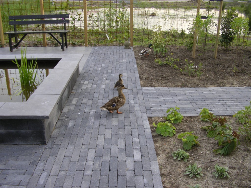 Vanaf gisteren zie ik nog maar 1 klein eendje rondzwemmen met zijn moeder, daarnet liepen ze zomaar over het terras.