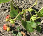 De eerste aardbeitjes zitten aan de plantjes en de sla groeit zo hard dat we er van het weekend wel van kunnen eten.