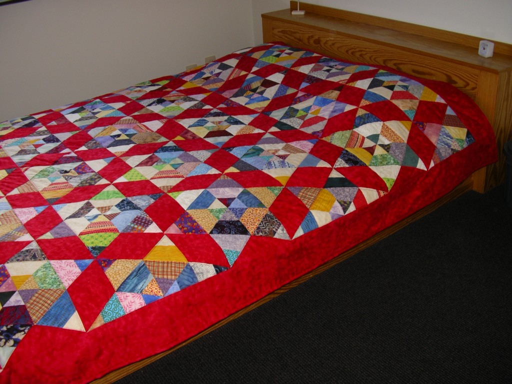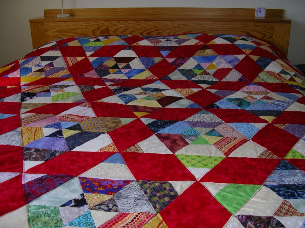 De scrapquilt is klaar, ik heb hem gelijk maar op het logeerbed gelegd, al denk ik niet dat hij gauw nodig zal zijn in dit goed geïsoleerde huis! Zelf hebben we onze quilt afgelopen winter helemaal niet gebruikt.
