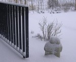 Vannacht is er aardig wat sneeuw gevallen en ook nu sneeuwt het nog, maar het haalt het natuurlijk niet bij de hoeveelheid die in het noorden gevallen is. Toch ben ik blij dat we vandaag niet met de auto weg hoeven.