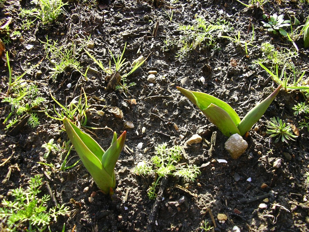 Wat heerlijk om het zonnetje weer te zien schijnen na die grijze regendag van gisteren! Je wordt er vanzelf vrolijk van. Zaterdag zat er een ekster in de tuin, ik heb de foto door het raam heen genomen dus hij is niet zo scherp. De eerste voorjaarsbodes zijn ook al aanwezig: de tulpen laten hun neusjes zien, je ziet helaas ook dat er flink veel onkruid staat: Op quiltgebied ben ik met een klein werkje tussendoor bezig, hier alvast een voorproefje: Het is vrij ingewikkeld, dus ik hoop dat het lukt.