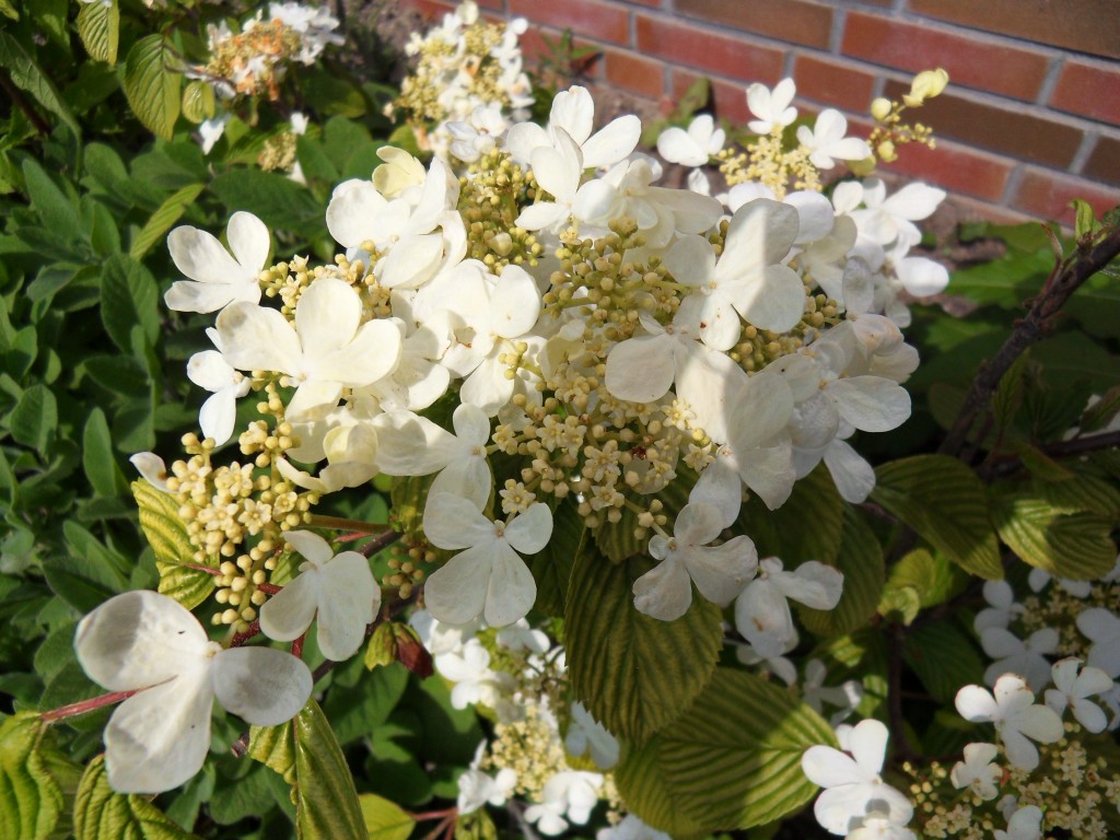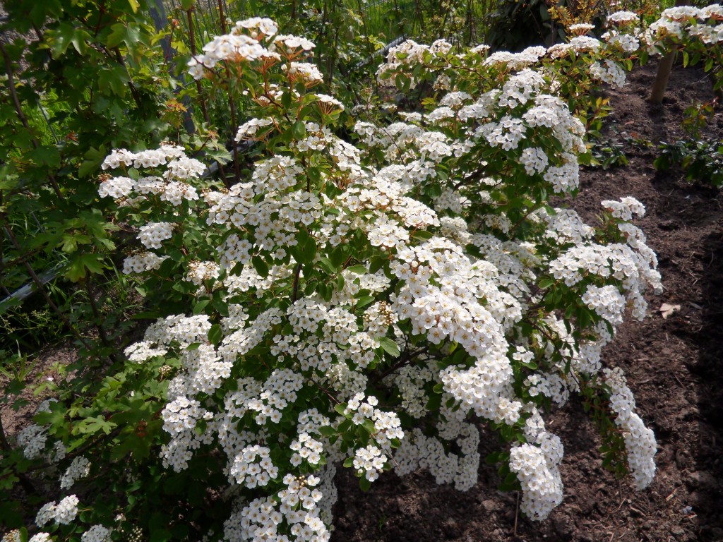 Ook in de tuin schiet alles uit de grond, de viburnums, de sieruien, de spirea’s en de centranthus, alles krijgt kleur.