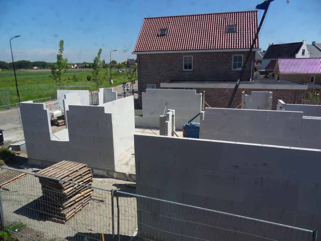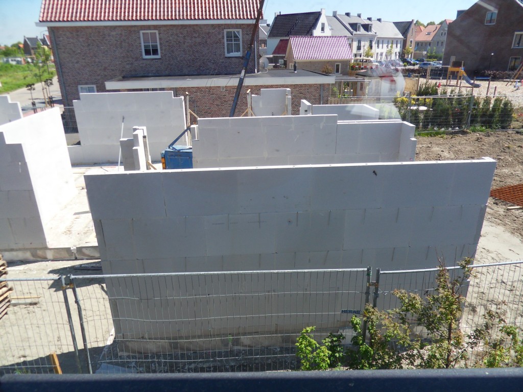 Vanmorgen werd ik weer wakker van de herrie van het bouwen hiernaast, toen ik het gordijn opendeed stond er ineens een muur en later stonden er een heleboel muurtjes: