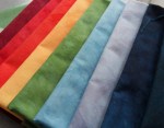 Gisteren heb ik weer wat lapjes geverfd en vandaag alles uitgespoeld en gestreken. Ik heb de volgende kleuren gebruikt: citrien, rode jaspis en azuriet. Deze drie kleuren onderling gemengd en dit is het resultaat: