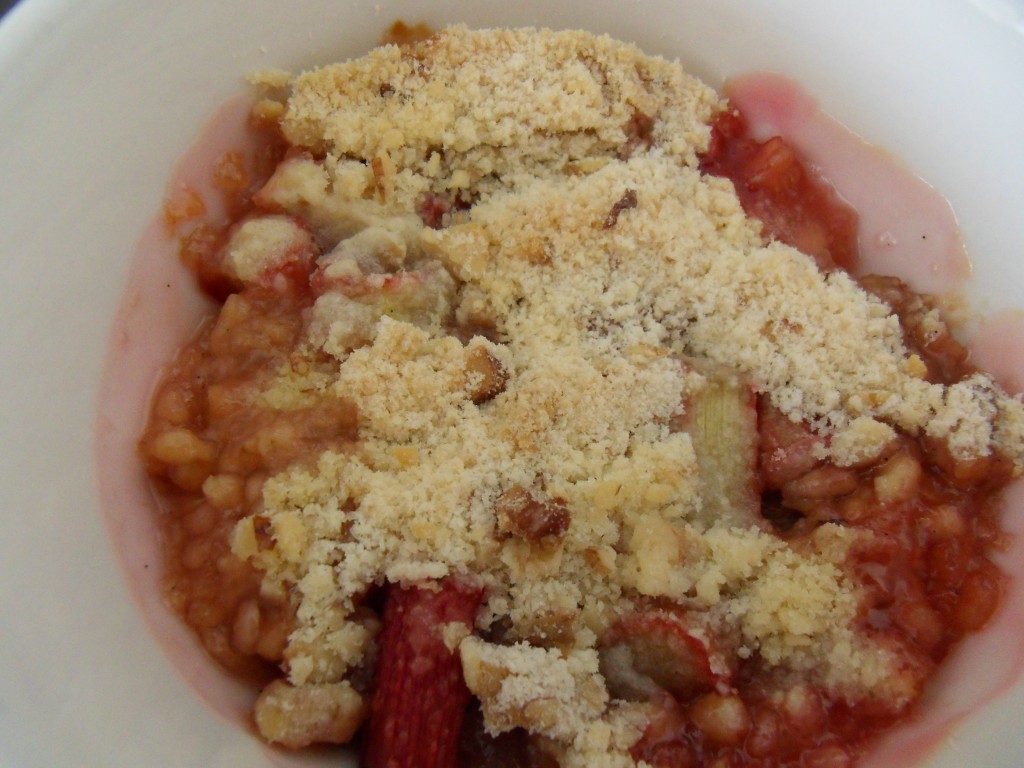 Ik had wat rabarber gekregen en heb hiervan een heerlijke rabarbercrumble gemaakt.