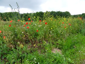 Gisteren hebben we de veenputtentocht rond Oudenbosch gelopen, een tocht van 27 km. Er was ook een route van 40 km, maar daar was dit jaar niet zoveel belangstelling voor i.v.m. de voetbal! Er was flink wat regen voorspeld, maar dat viel alles mee en de temperatuur was ook prima om te lopen. Jammer dat de tocht voor een flink deel door de bebouwde kom voerde en door een industrieterrein, dat is nooit zo spectaculair, maar gelukkig konden we ook van de natuur genieten. Hier een mooi bloeiende berm: