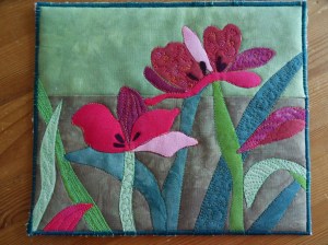 Ik heb de bloemen er met vliesofix op gemaakt en hier en daar doorgequilt.