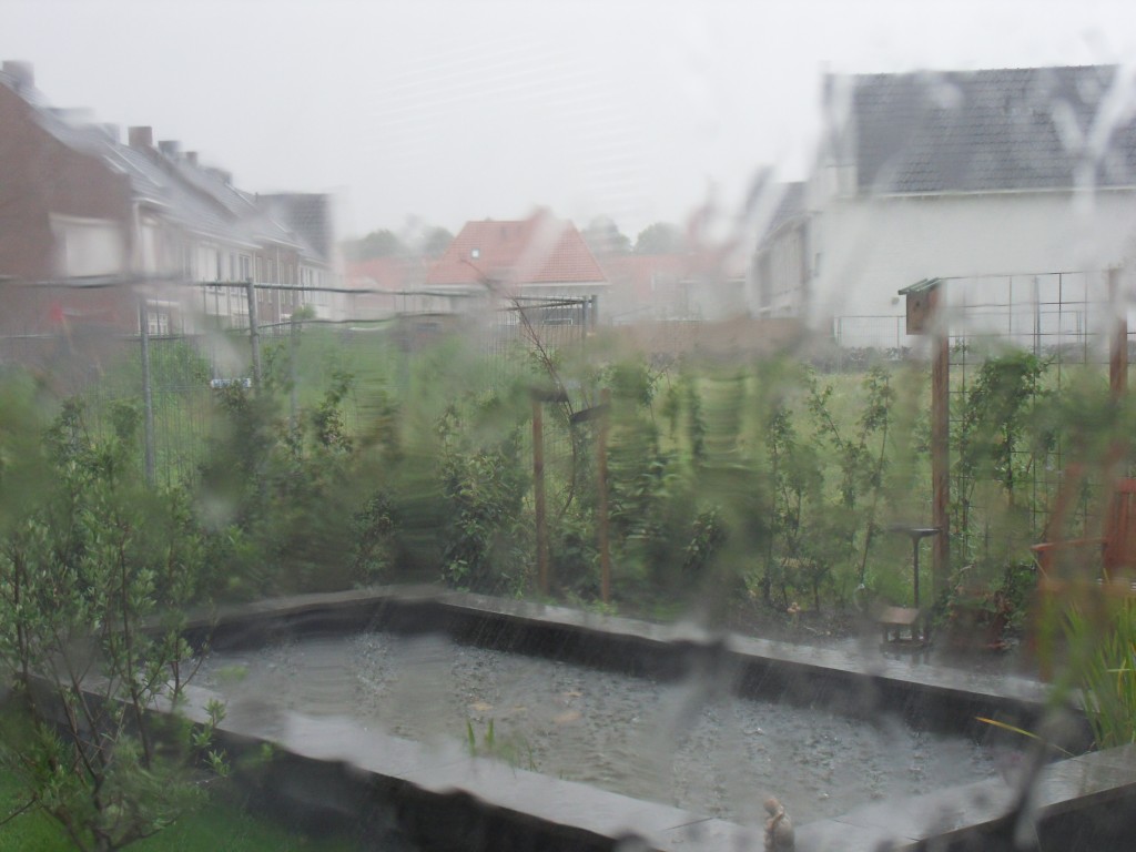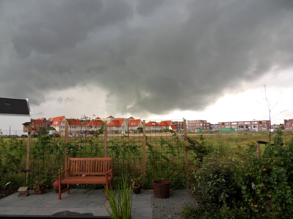 Gistermiddag kregen we ook nog een flinke bui, maar die zag ik aankomen, dus heb ik gauw de was binnengehaald!