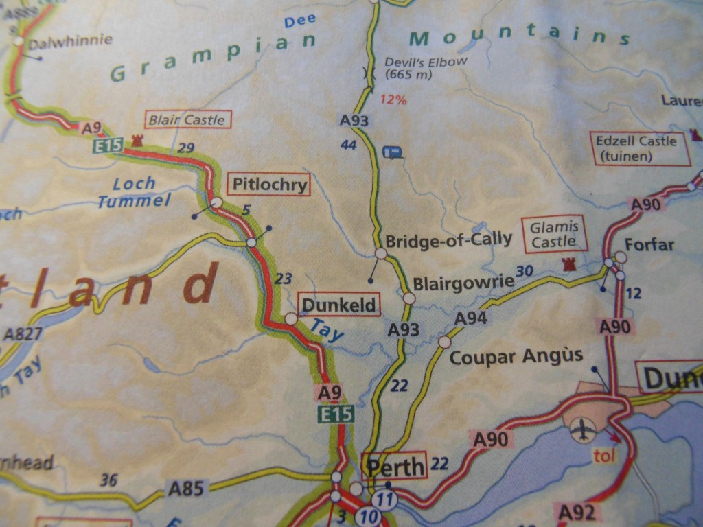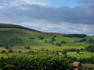 De eerste week van onze vakantie in Schotland brachten we door in een huisje in de buurt van Blairgowrie, dit ligt in midden-Schotland, iets ten noordoosten van Dundee: Het was een klein huisje, maar voorzien van alles wat we nodig hadden, inclusief een heerlijke open haard die we elke avond flink opstookten, want voor de warmte moet je niet naar Schotland gaan. Vanaf de achterkant van ons huisje zag het er zo uit, mooi toch?