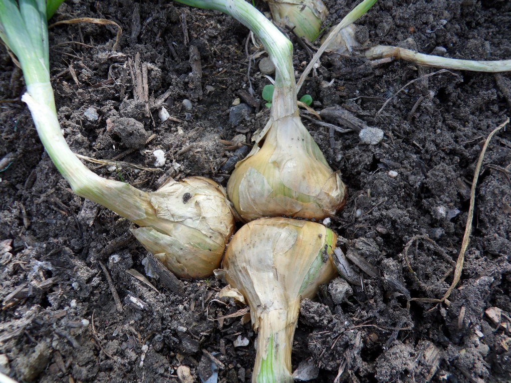 Het koninginnekruid (Eupatorium) staat prachtig in bloei, ook de uien doen het prima.