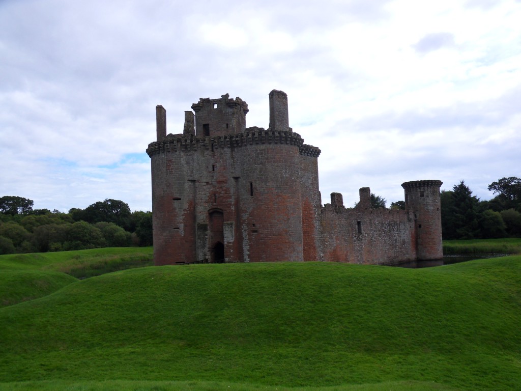 Een stukje verder lag het kasteel Caerlaverock, dit is in een driehoek gebouwd rond de binnenplaats, wat heel weinig schijnt voor te komen. De driehoekvorm komt ook regelmatig terug, b.v. boven de ramen.