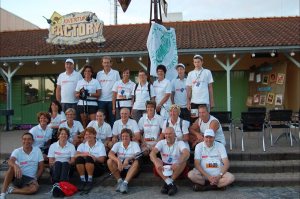 Hier een foto van onze hele groep bij de start, inclusief de chauffeurs en onze captain die bij elke post klaarstond voor hulp en aanmoediging: