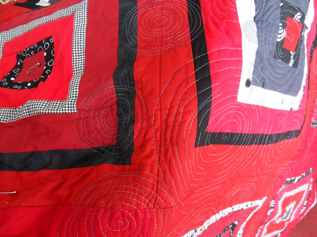 Ik ben maar weer eens verder gegaan aan de quilt voor Martijn, voor je het weet wordt het weer kouder en heeft hij hem nodig. Ik dacht eigenlijk dat ik al verder was met quilten, dus het valt een beetje tegen, maar ik ben er aan begonnen dus ik zal het ook af moeten maken!