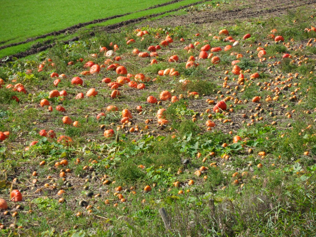 Gistermorgen begon het niet zo mooi, maar later klaarde het gelukkig op en hebben we nog een leuke wandeling gemaakt. We zagen een heleboel oranje in de verte, toen we dichterbij kwamen bleken het allemaal pompoenen te zijn, een grappig gezicht.