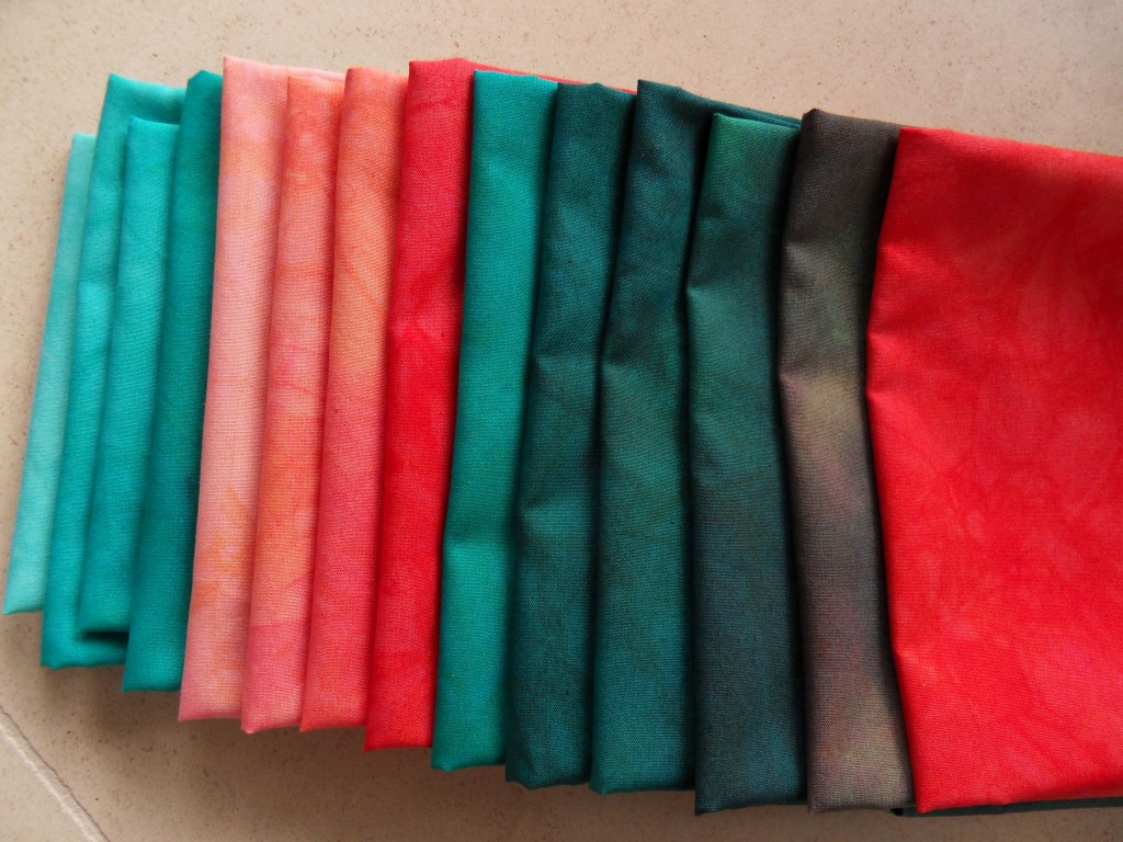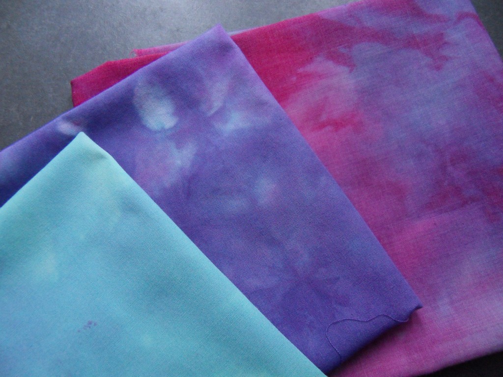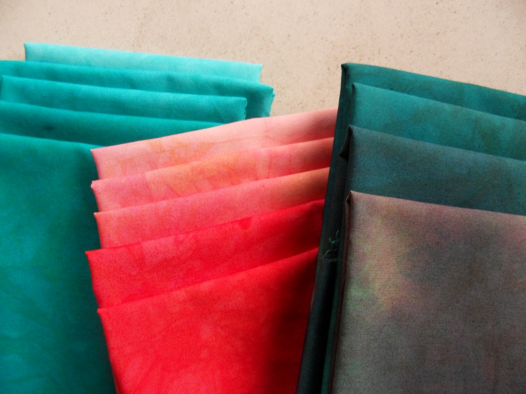 Vanmorgen heb ik de tweede serie uitgespoeld en gestreken. Ik heb nu halve fat quarters genomen en gisteren had ik hele fat quarters. Ik ben uitgegaan van twee zelfgemengde kleuren, nl. carneool en amazoniet en dit is het resultaat.
