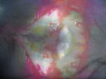 Ik heb nog een paar lapjes geverfd met sneeuwverven, ze zijn nogal donker geworden, maar er zitten ook een paar mooie heldere stukjes tussen:
