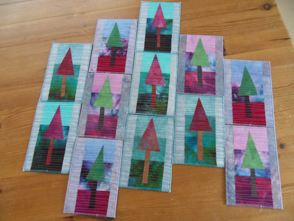 Gisteren heb ik nog een stel kerstkaarten gemaakt van handgeverfde stoffen met een boompje erop. Ik heb ze allemaal al uitgedeeld en ik weet niet zeker of ik er nog meer ga maken, het is best wel veel werk.