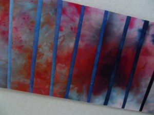 Spelen met kleuren, smalle lijntjes invoegen in een gesneeuwverfd lapje, ik weet nog niet precies hoe ik verder ga.