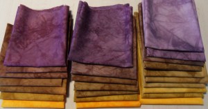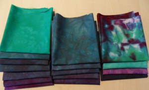 De tweede serie heb ik geverfd van chalcedoon naar smaragd, al vind ik de smaragd wat fel van kleur. Bij het tweede stapeltje heb ik alleen de gemengde kleuren gebruikt, het derde stapeltje heb ik met de restjes verfoplossing geverfd.