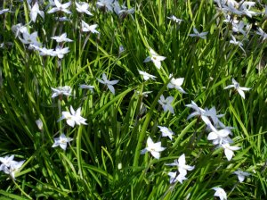 Inmiddels wordt het steeds meer voorjaar in de tuin, de stervormige bloemetjes van de Ipheion staan ook leuk in de voortuin.