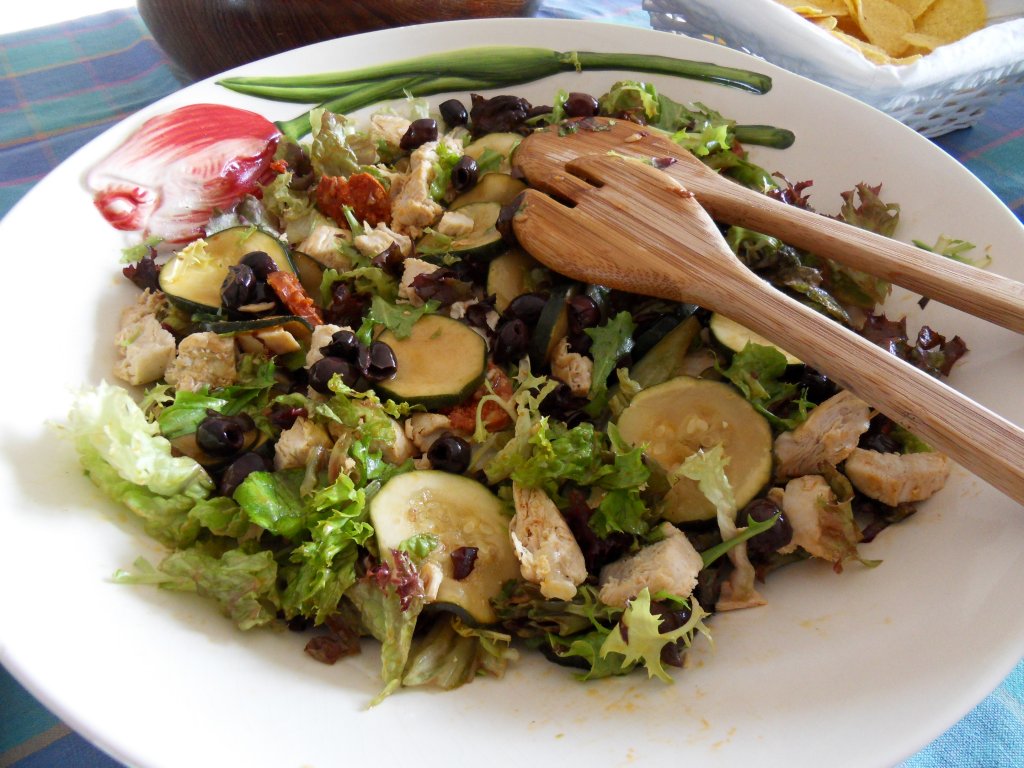 O ja, en vooraf tomatensoep en courgettesoep. Als toetje ijs (zelf gekocht) en volgens mij had iedereen genoeg gegeten. Ik zal deze week nog wel een paar recepten plaatsen.