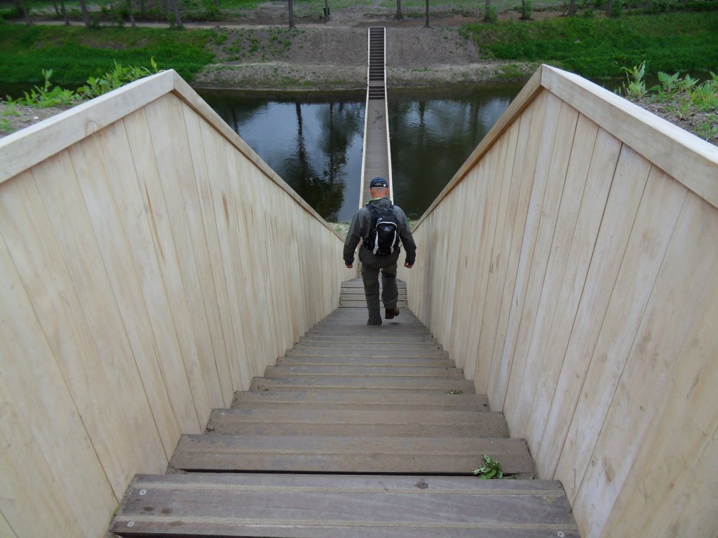 We hadden al vaker door dit gebied gelopen maar dit was de eerste keer dat we over de loopgravenbrug gingen.