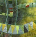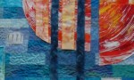 Gisteren ben ik naar de tentoonstelling van het Quiltersgilde in de Pieterskerk in Leiden geweest. We konden meerijden met een bus met Zeeuwse quiltsters, lekker ontspannen, alleen de terugreis begon wat later dan gepland. We zouden 4 uur uit Leiden vertrekken, maar doordat de bus vast zat op een parkeerterrein door een ongelukkig geparkeerde auto konden we pas ruim een uur later vertrekken. Gelukkig was het mooi weer en konden we lekker napraten over alles wat we gezien hadden. Het was weer een mooie tentoonstelling met heel diverse werkstukken.  De tentoonstelling duurt nog t/m 14 september. Ik zal geen foto’s van de quilts plaatsen, alleen wat detailfoto’s. De laatste twee zijn trouwens genomen in museum het Leids Wevershuis, waar een overzichtstentoonstelling was van het werk van Cherilyn Martin, ook heel bijzonder, het pand zelf trouwens ook waar het gezellig druk was i.v.m. open monumentendag. Na thuiskomst kon ik gelijk door naar een feestje bij broer Maarten en schoonzus Karin die dit jaar 25 jaar getrouwd waren en allebei 50 waren geworden, waar we van een heerlijke barbecue konden genieten, fijn dat ik niet meer hoefde te koken na zo’n lange dag.