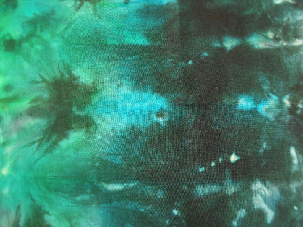 Er ontstaat dan een mooie tekening in de stof, bij de volgende door verschillende tinten groen en blauw en bij de laatste door verschillende tinten rood.