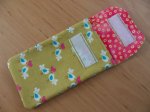 Rosanne had gevraagd of ik een hoesje voor haar I-pod wilde maken. Bij de eerste die ik maakte zitten de vogeltjes aan de voorkant ondersteboven en ik vind de sluiting niet zo goed gelukt. Daarom heb ik er nog maar eentje gemaakt met een groter klepje en nu in de lengte. Ze had zondag zelf de stofjes uitgezocht.
