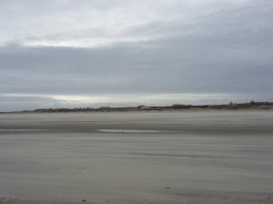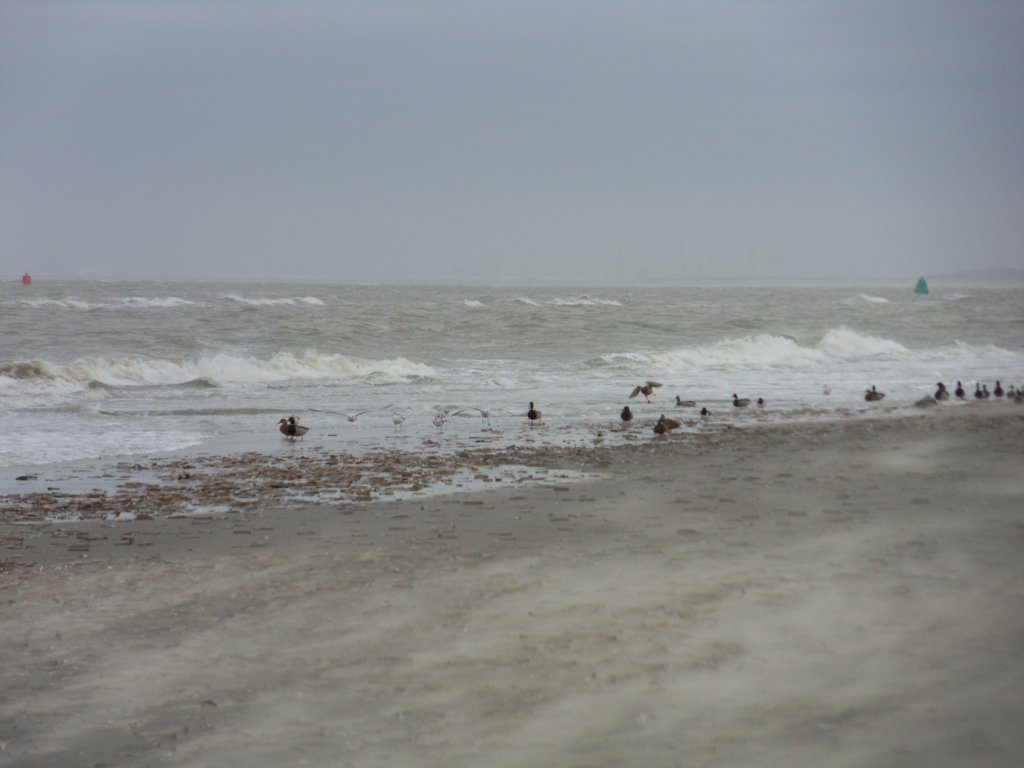 Het strand lag er verlaten bij, wel zagen we veel meeuwen en ook eenden bij het water.