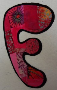 Het lijkt wel alsof ik de laatste tijd niet veel quilt, maar ik ben hard aan het werk aan de quilt voor de tentoonstelling van volgend jaar. Daar kan ik dus helaas nog niet veel van laten zien. Ik ben letters aan het maken die ik knip uit een patchwork blok, zoals deze:
