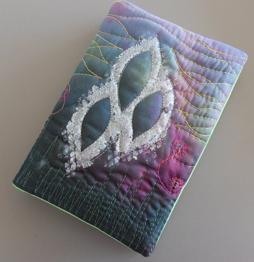 Van een zelfgeverfd lapje heb ik een omslag gemaakt voor een notitieboekje.