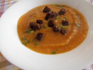 Om het aantal calorieën verder te beperken hebben we het hele weekend vegetarisch gegeten, zondag een kruidige wortelsoep: