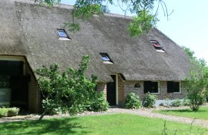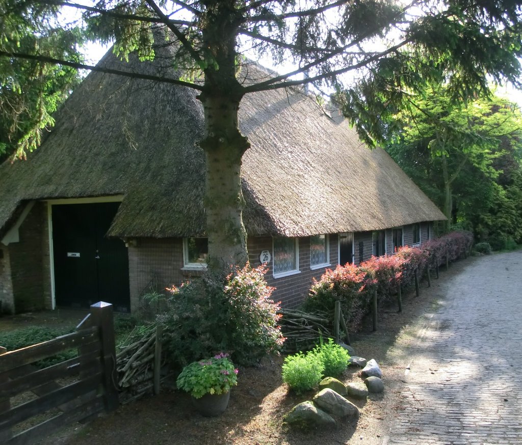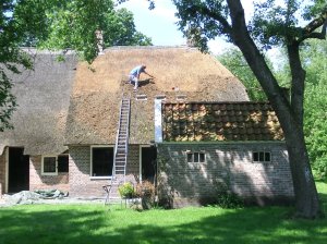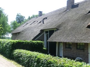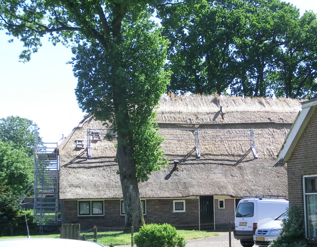 Onderweg zagen we veel boerderijen met rieten daken, ook waren ze op verschillende plaatsen bezig aan een dak.