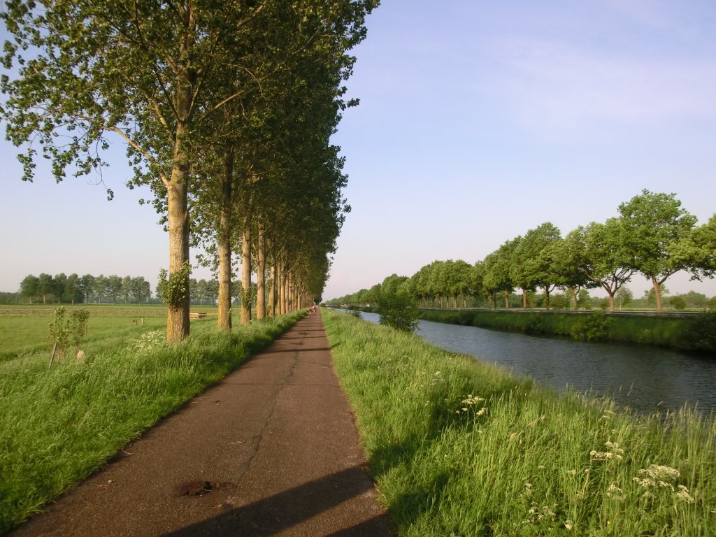 De eerste dag waren we best snel weer binnen, even na 1 uur. We hadden dus nog volop de tijd om lekker van de zon te genieten in de tuin na het douchen. Aan het eind van de middag zijn we naar Jan en Margriet in Emmen gegaan waar we heerlijk buiten gegeten hebben. Daarna op tijd naar bed, prima geslapen na zo’n dag buiten. We liepen diverse keren langs het kanaal en moesten dan ook regelmatig een bruggetje over.