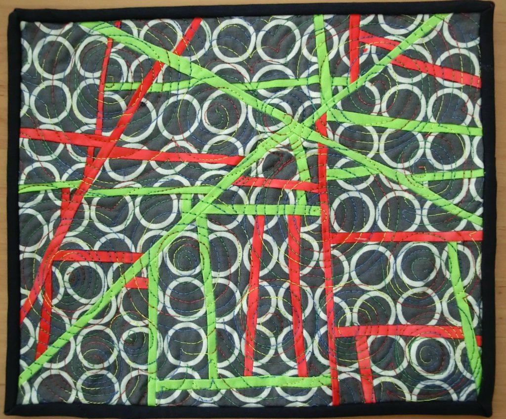 Nienke schreef onlangs over de streepjestechniek van Kathleen Loomis, ik had deze al eerder toegepast maar kreeg er ineens weer zin in. Het resultaat is precies groot genoeg als onderlegger voor de Ipad. Handig voor als ik hem aan tafel gebruik i.p.v. op schoot.