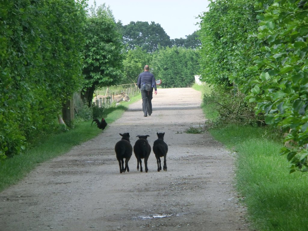 Op een fietspad liepen een paar schaapjes gezellig met ons mee.