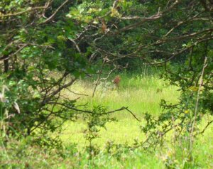 Toen we op een bankje een boterham zaten te eten zagen we ineens een reetje in de verte, met inzoomen is het toch nog gelukt een foto te maken.