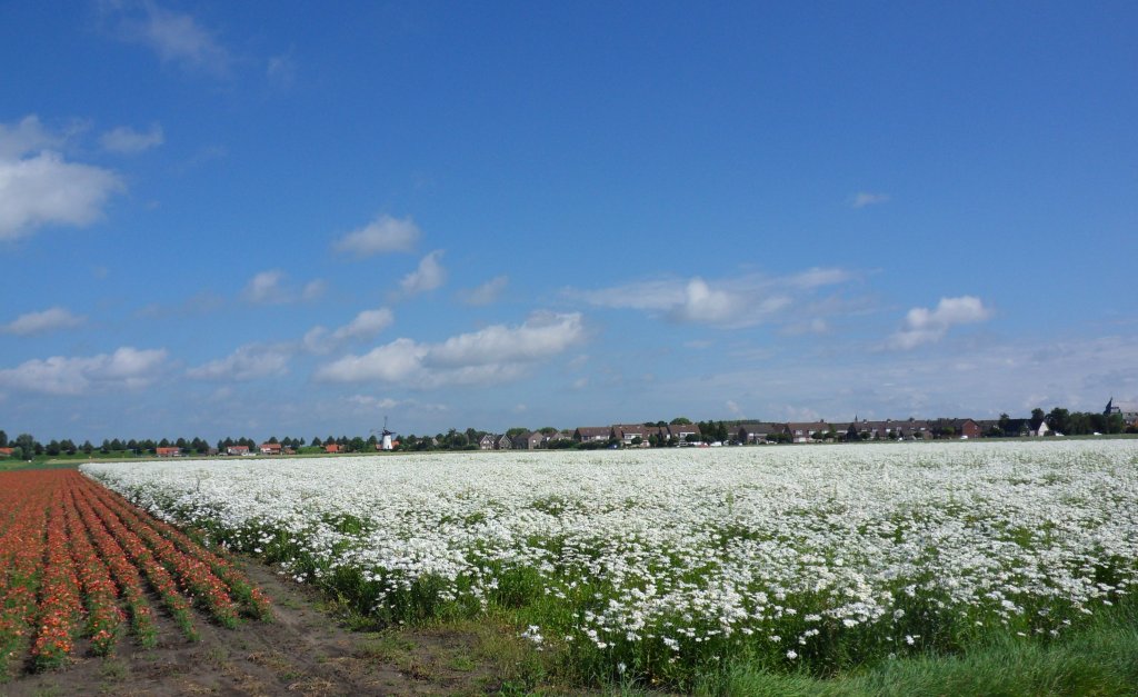 We liepen voornamelijk over dijken en polderwegen en kwamen langs water en langs mooie bloemenvelden. In het begin loop je erg dicht op elkaar maar na een paar kilometer wordt dat vanzelf minder en kan je beter je eigen tempo lopen.