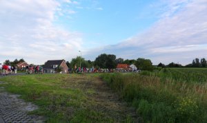 Gisteren was de zevendorpentocht op Tholen, wij kozen de 40 km (bijna 41) dus kwamen we maar door 5 dorpen, alleen de 50 km kwam door alle zeven. We waren al om half 6 opgestaan, zodat we al even over half 7 op het parkeerterrein waren vanwaar we met een busje naar de start werden gebracht. Om 7 uur werd het startsein gegeven en onder de klanken van het muziekkorps vertrokken de lopers voor de 30, 40 en 50 km. Een leuk gezicht, zo’n hele stoet lopers.