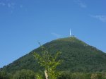 De puy de Dôme is de hoogste vulkaan in een keten van ongeveer 40 km lang met 66 vulkanen en kraters. De puy de Dôme is o.a. bekend doordat hij diverse malen eindpunt was van een etappe van de Tour de France en ligt zo’n 10 km van Clermont Ferrand. Vanaf juni dit jaar kan je met een treintje naar boven en natuurlijk ook lopend. Wij zijn heen met het treintje gegaan en terug gaan lopen, wat behoorlijk steil ging, 10 tot 13%. Toen we boven kwamen waren er diverse paragliders in de lucht maar even later moesten ze stoppen vanwege de harde wind. Ik vond het prachtig om te zien maar zou het zelf voor geen goud doen! Het uitzicht was fantastisch, je zag de andere vulkanen liggen en Clermont Ferrand, heel indrukwekkend. Bovenop de vulkaan liggen de resten van een oude tempel van Mercurius, er is een restaurant en winkeltje en een enorme zendmast.