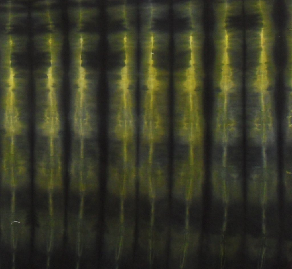 Het volgende lapje had ik al eerder geverfd, maar ik vond het een beetje te felgeel van kleur, ik heb het gevouwen en er ook zwarte verf overgedaan, gelukkig zie je nog wat gele stukjes.