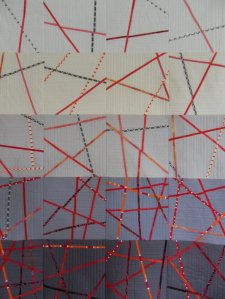 De quilt met streepjes is bijna klaar, ik heb elk blok apart gequilt met alleen Hobbs erachter en daarna aan elkaar gezet, nu moet er nog een achterkant tegen. Als ik hem dan in de verbindingsnaden van de blokken nog een keer quilt zit de achterkant gelijk vast.