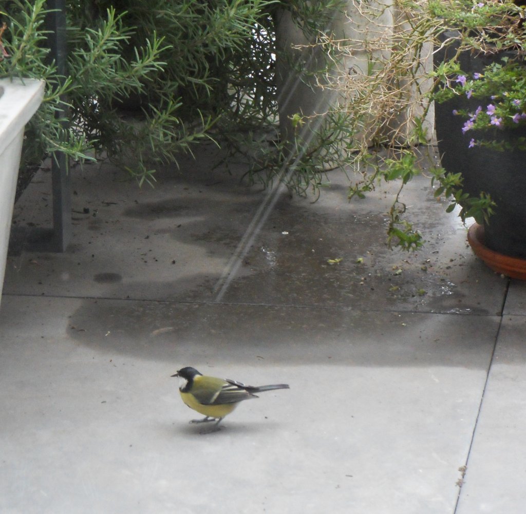 Doordat de haag goed dicht is en de struiken weer gegroeid komen er steeds meer vogels in de tuin.