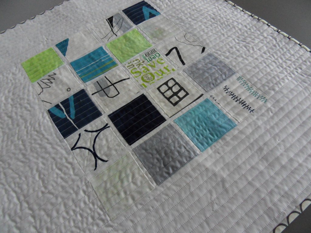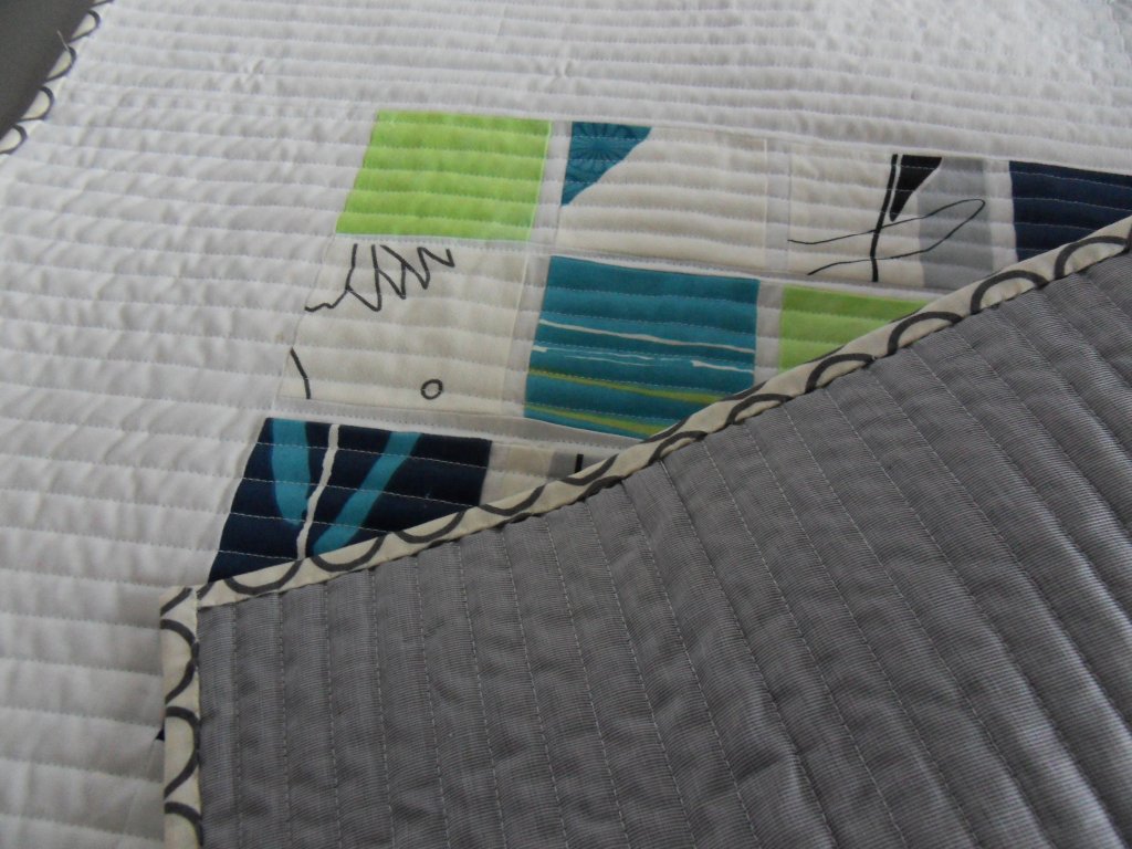 Het kleine quiltje is klaar, ik had nog een lekker dun katoentje voor de achterkant en heb het met rechte lijnen doorgequilt, het voelt heerlijk zacht aan.