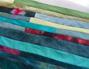 en zomaar zonder plan wat stroken gesneden en aan elkaar gezet. Deze keer zonder lineaal, af en toe een golvende lijn, ik zie wel waar het eindigt.