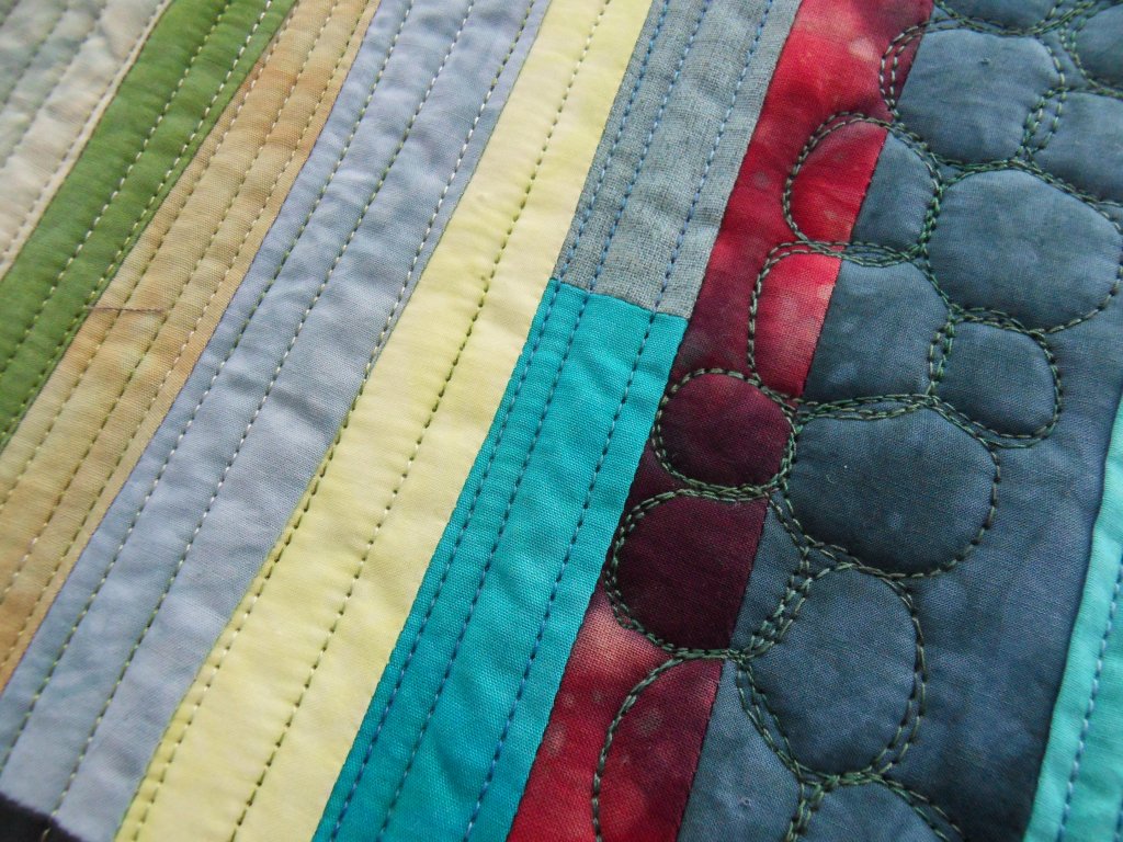 Het quilten van Quilters Dream Green gaat heel soepel, ik merk weinig verschil met andere tussenvullingen. Ik heb zowel met rechte lijnen als met freemotion gequilt. Op de website van Elly Prins staat dat het ook heel geschikt is voor handquilten, maar dat heb ik niet geprobeerd.