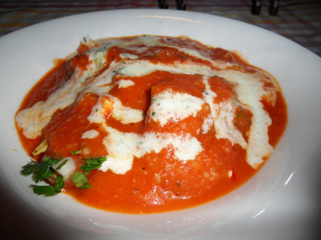 Leg een halve zak tortillachips in een ovenschaaltje, strooi er flink wat geraspte kaas over en zet dit 3 à 4 minuten in een oven van 200 graden. Meng wat yoghurt met twee theelepels jalapeñopepers en eventueel wat munt (dat heb ik weggelaten omdat we daar niet van houden) en meng dit met de staafmixer.