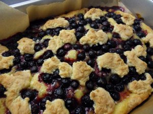 We waren van plan vandaag te gaan lopen bij Oudenbosch maar vanwege de regen hebben we er maar van afgezien. Tijd dus om iets anders te doen, eerst iets lekkers gebakken voor bij de koffie, een koek met lemon curd en blauwe bessen,