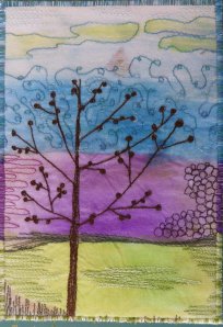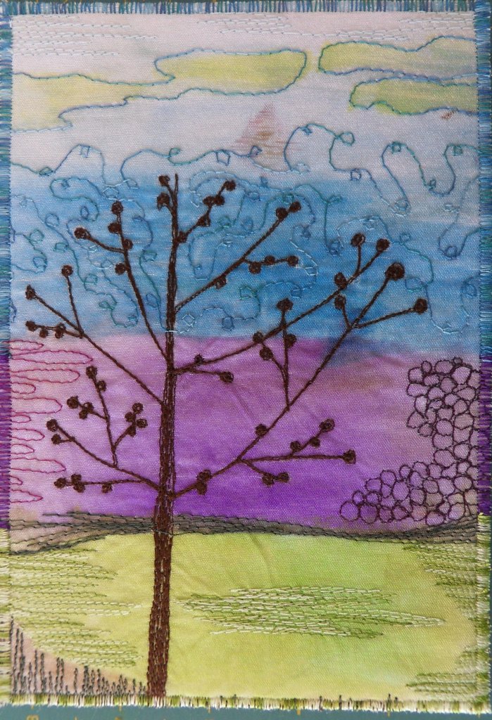 Het lapje met de boom van vorige week heb ik ingevuld met garen en ja, ik heb er weer een kaart van gemaakt, ook al is hij wat groter dan anders.  Deze is 14 x 20 cm.